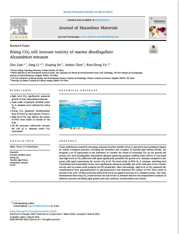 | 论文标题 | Rising CO2 will increase toxicity of marine dinoflagellate Alexandrium minutum | ||